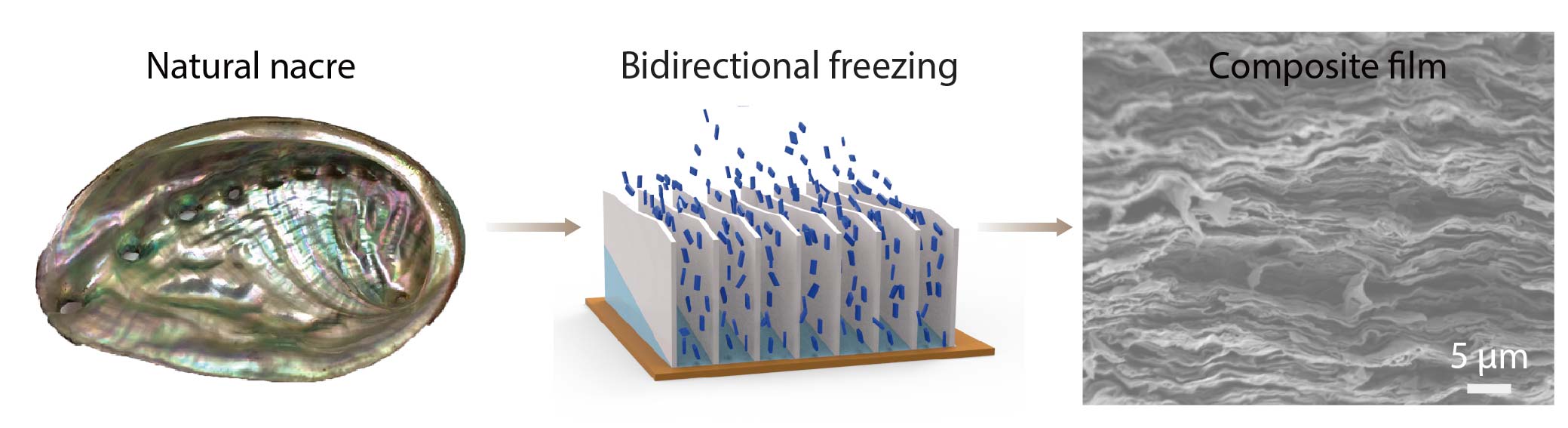 “Bioinspired hydroxyapatite/poly(methyl methacrylate) composite with nacre-mimetic architecture by a bidirectional freezing method.”