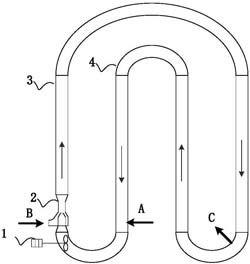 专利简介: 本发明公开了一种喷射式环管反应器,其包括:环状反应管道、射流混合装置、轴流泵、换热装置、进料口和出料口。该反应器能为反应提供极佳的宏观混合和微观混合环境;还易于实现多点进料,多段控温,利于调控产品分布。