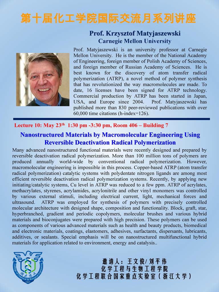 化工学院第九届国际交流月系列讲座----Prof. Krzysztof Matyjaszewski