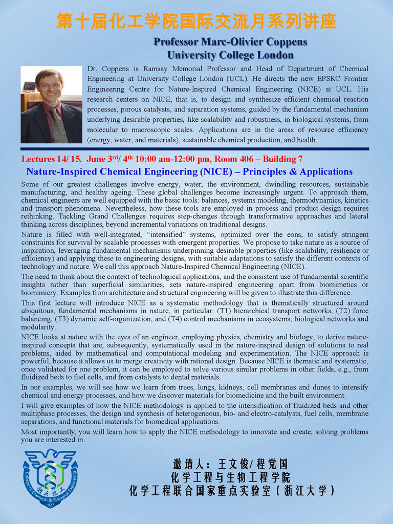 化工学院第九届国际交流月系列讲座----Professor Marc-Olivier Coppens
