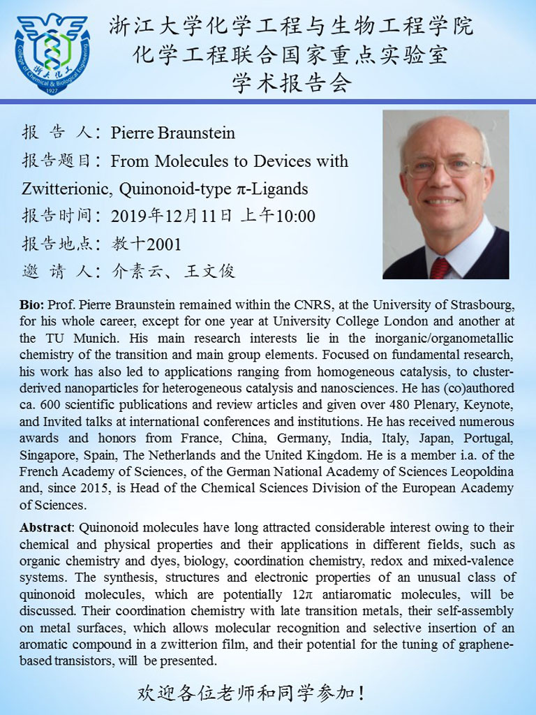 法国斯特拉斯堡大学Pierre Braunstein教授学术报告