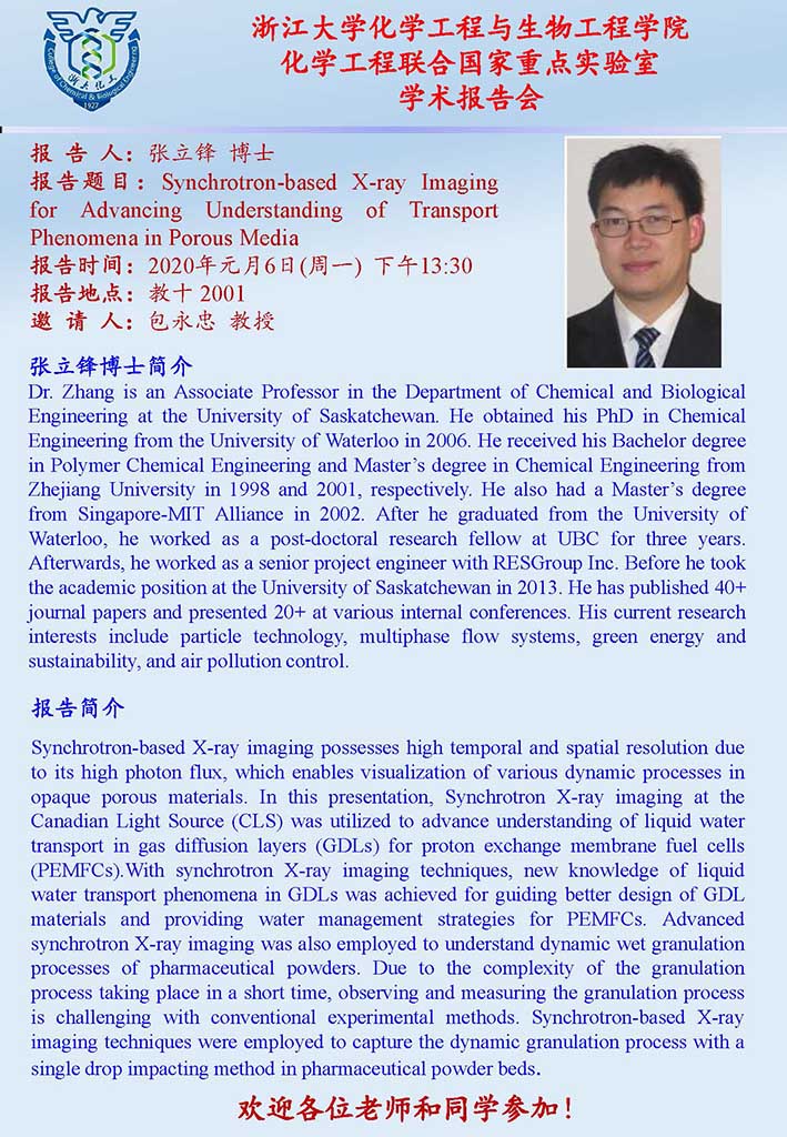 加拿大萨斯喀彻温大学张立锋博士学术报告
