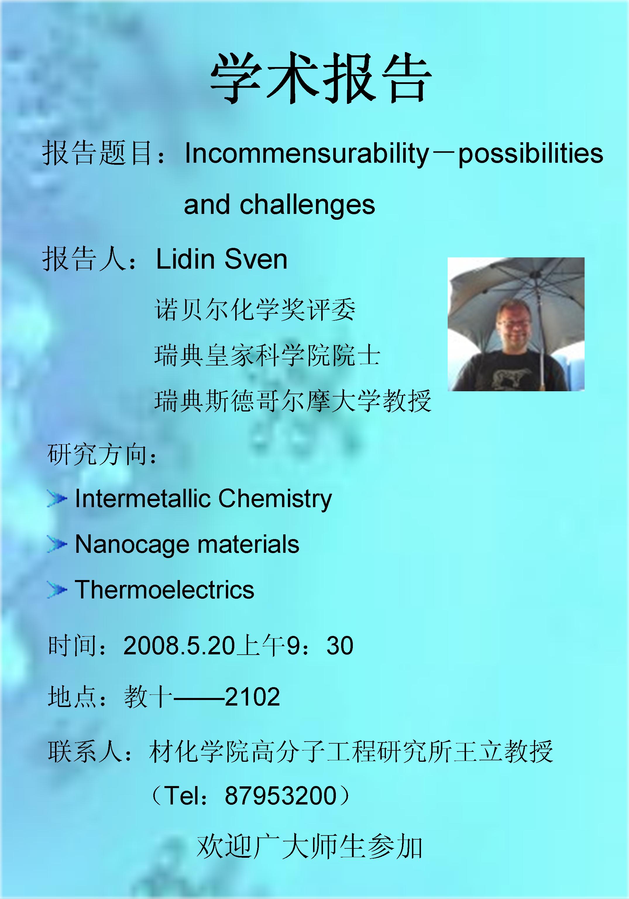瑞典斯德哥尔摩大学Lidin Sven教授来访